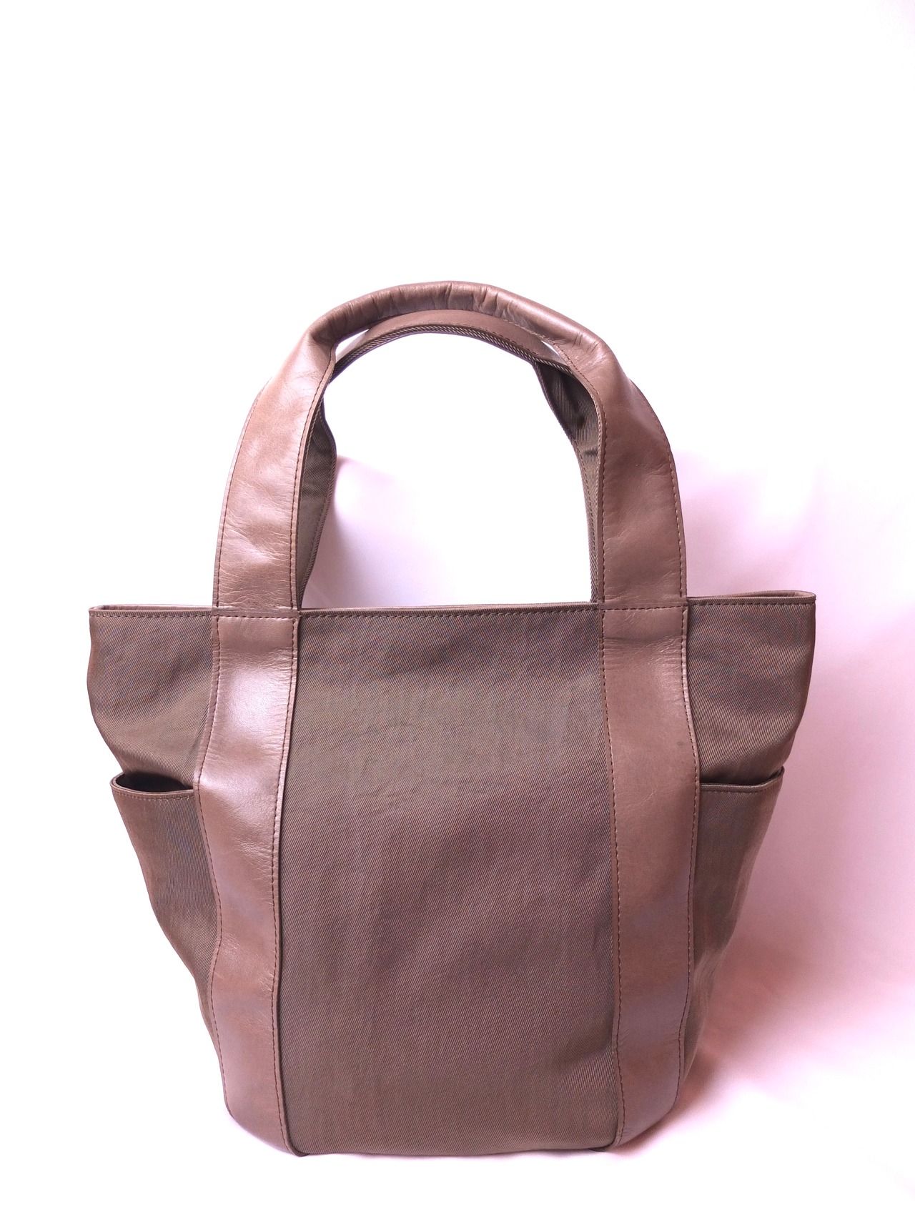 B.stuffオリジナルのヘビーツイルナイロンに、透明感のある艶が特徴のフラウを合わせたバケツ型バッグ。