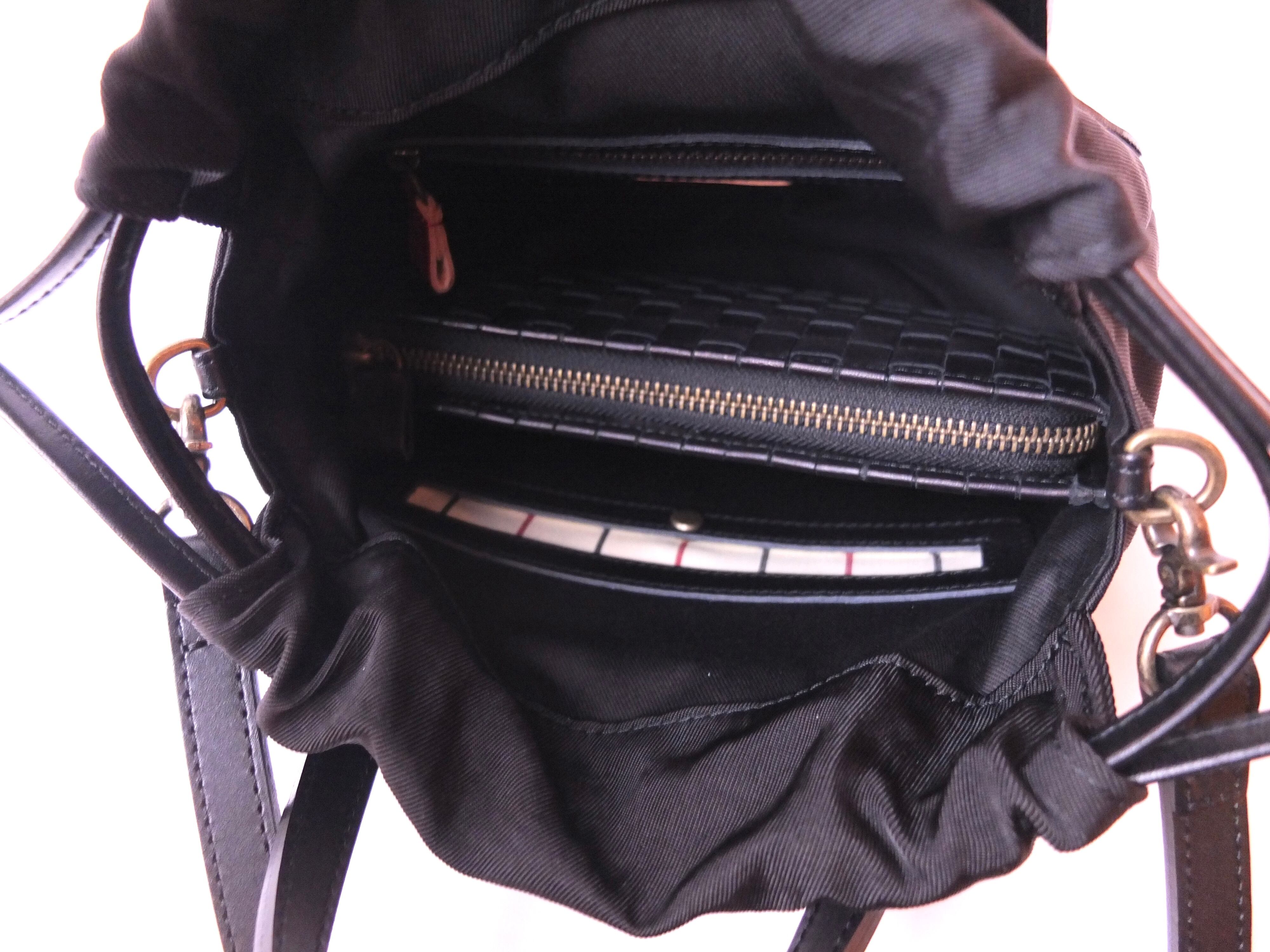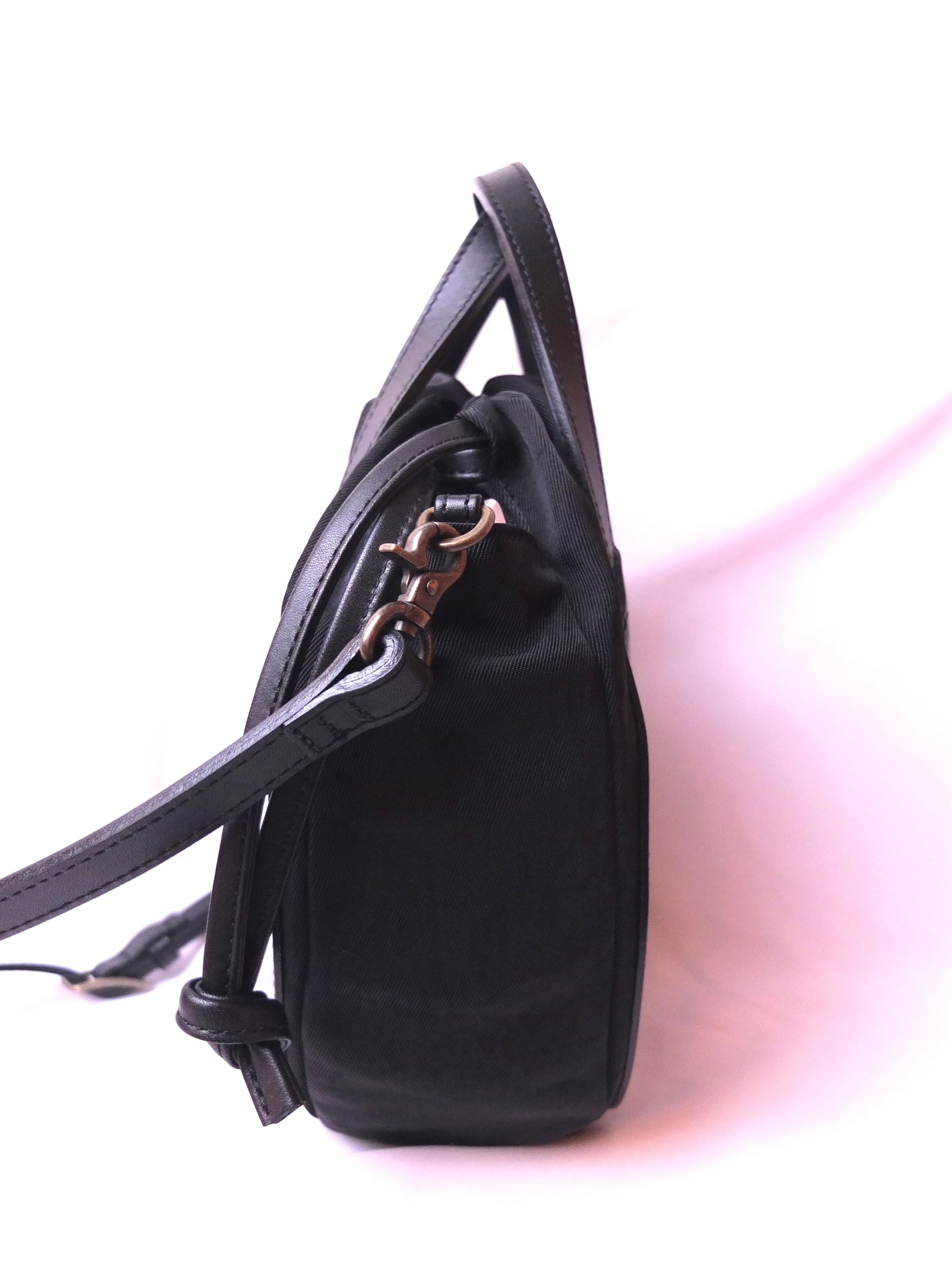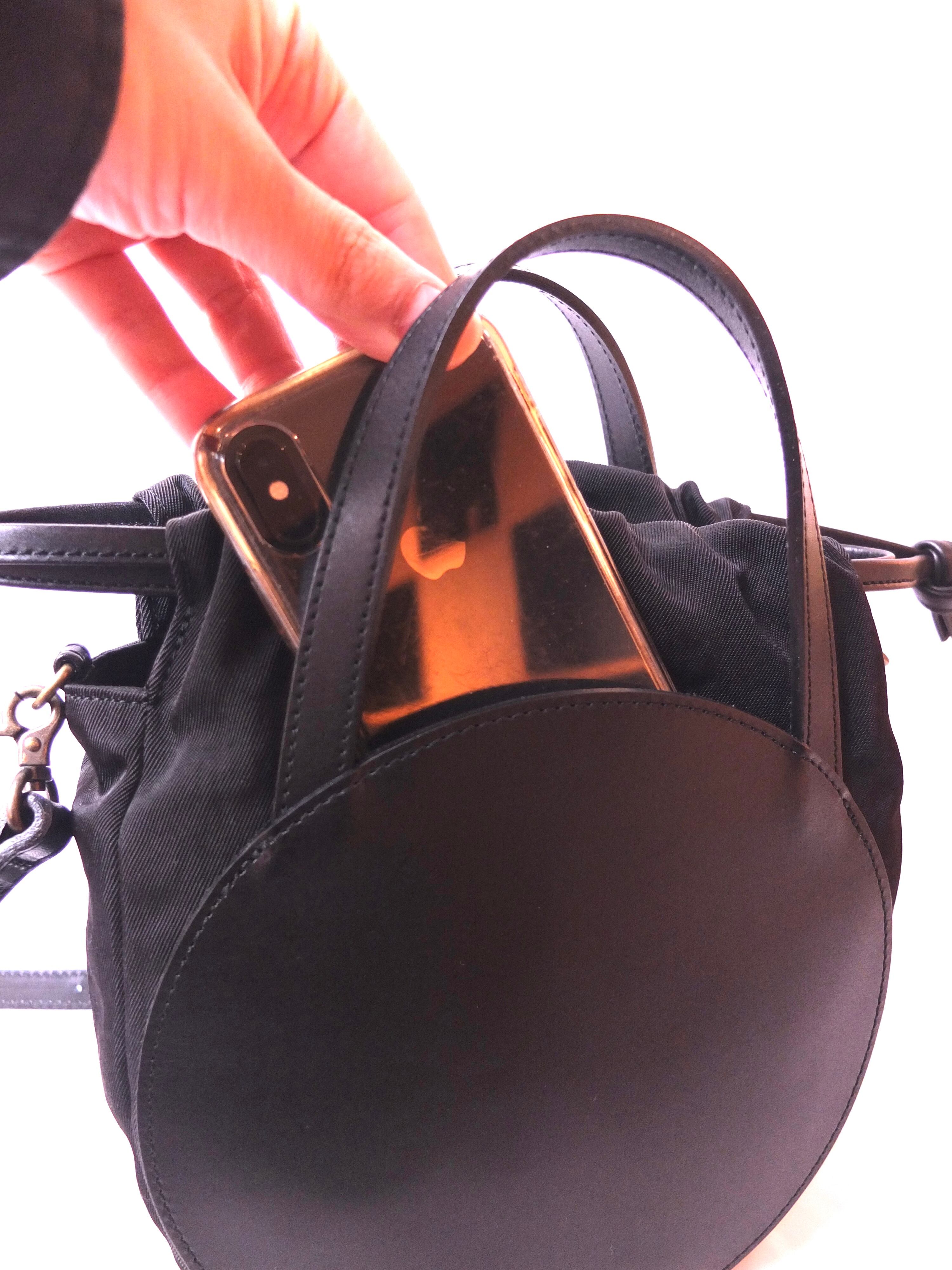 巾着バッグとしては珍しいラウンドフォルム。上品な質感の牛革にナイロンの巾着をプラスすることで、軽やかさと扱いやすいバッグに。長財布は縦横どちらでも収納できる大きさです。ショルダーベルトを取り外してハンドバッグとしてもお使いいただけます。