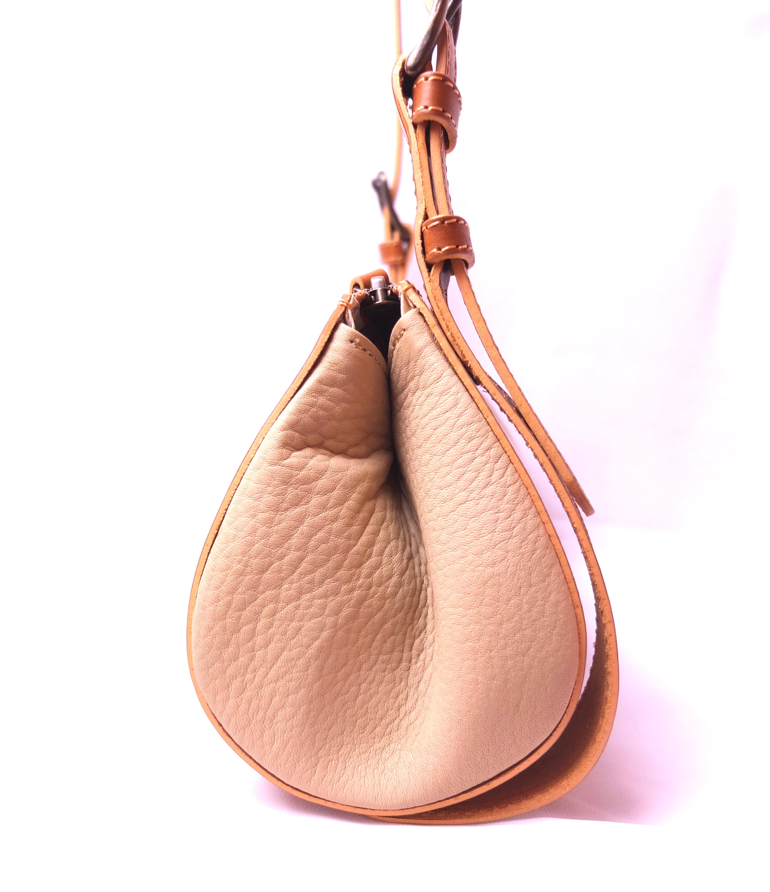 両脇には柔らかな革のモニカ(牛革)を使用し、2種類の革をツートンカラーでお楽しみいただけるバッグです。