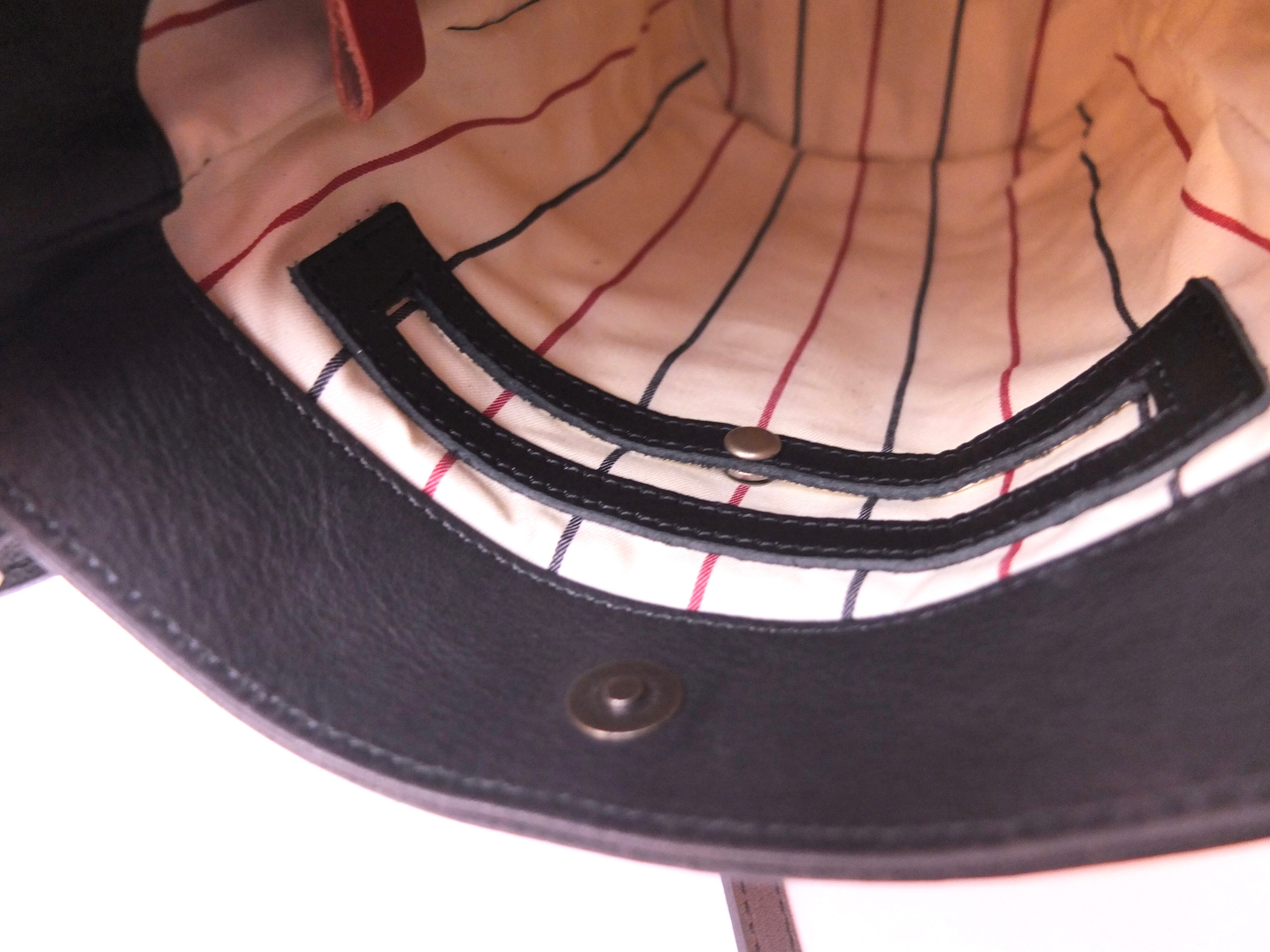 外にはスマートフォンが入る大きさのオープンポケット1ヶ所、小さなファスナーポケットが1ヶ所、内装はホック付きポケットとファスナーポケットが1ヶ所づつございます。