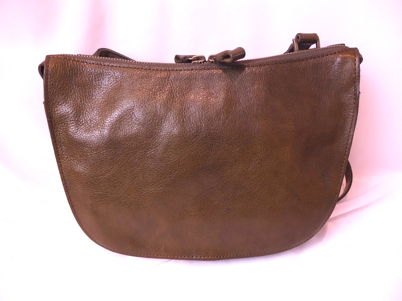 艶のあるナチュラルシュリンクレザーを使用しているため、部位により様々な表情があり1点1点全く違った風合いに。