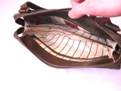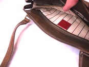 内ポケットはファスナーポケット1か所、オープンポケット1か所、ホック付きポケット1か所がございます。
