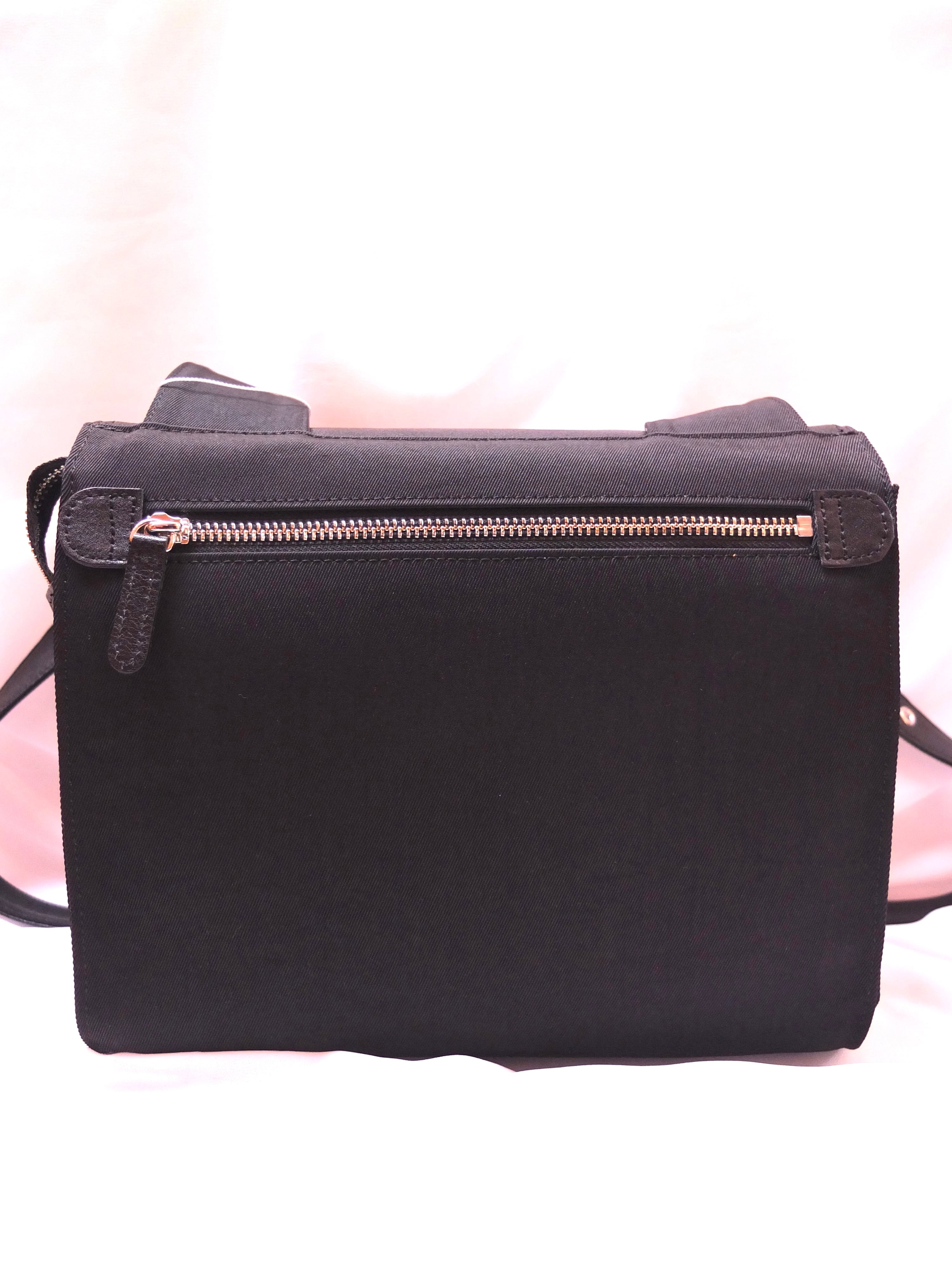 ベルトの長さは5段階調整が可能。本体の開閉部は浅いかぶせがついておりファスナー部分を隠してスッキリとした印象に。ファスナーはバッグの外側まで続いているので、開けた際に見通しが良くなっております。サイドのホックで固定することも可能です。
