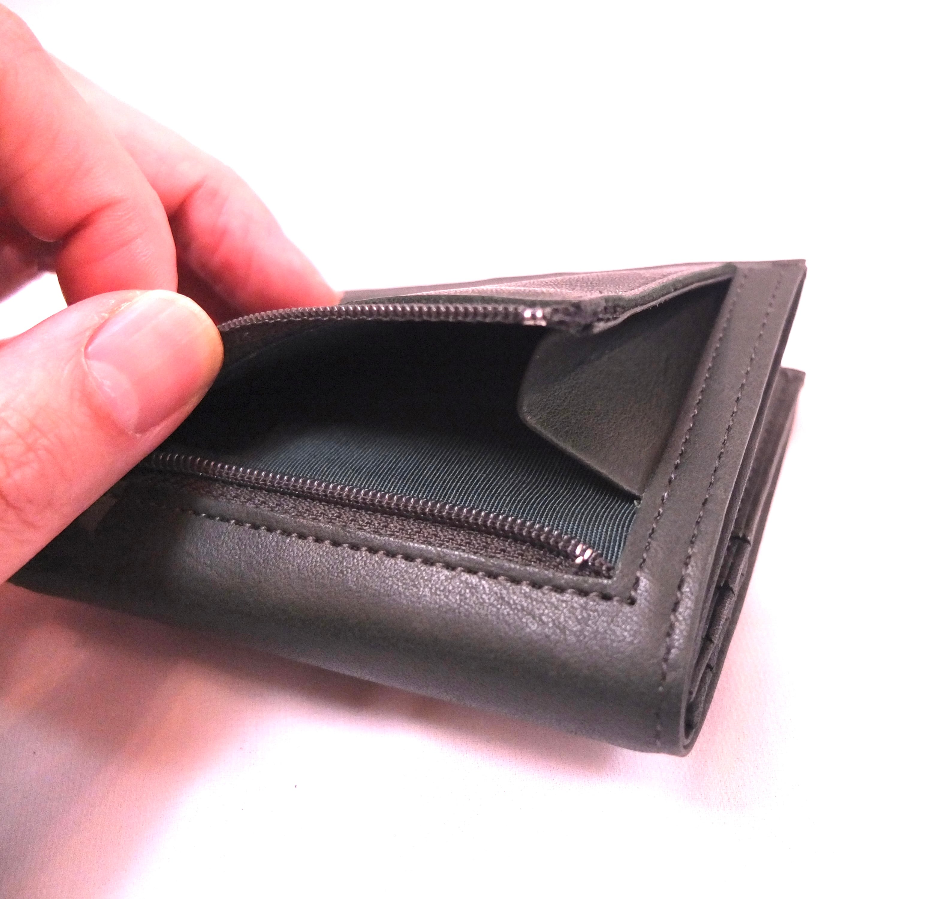 小銭入れを最小限にし、従来の2つ折り財布よりも薄く、かつカードポケットの収納を増やした、スマート財布。