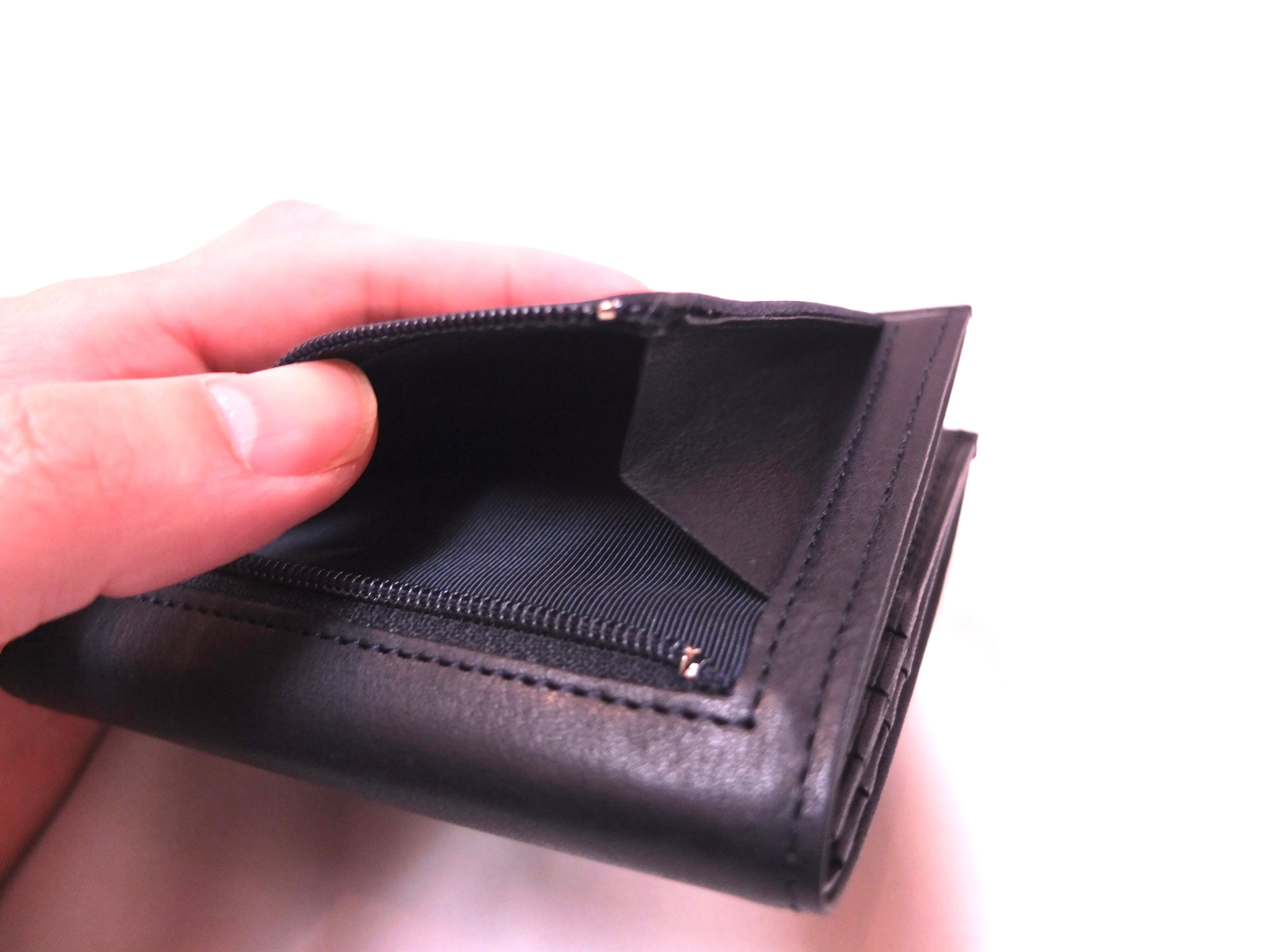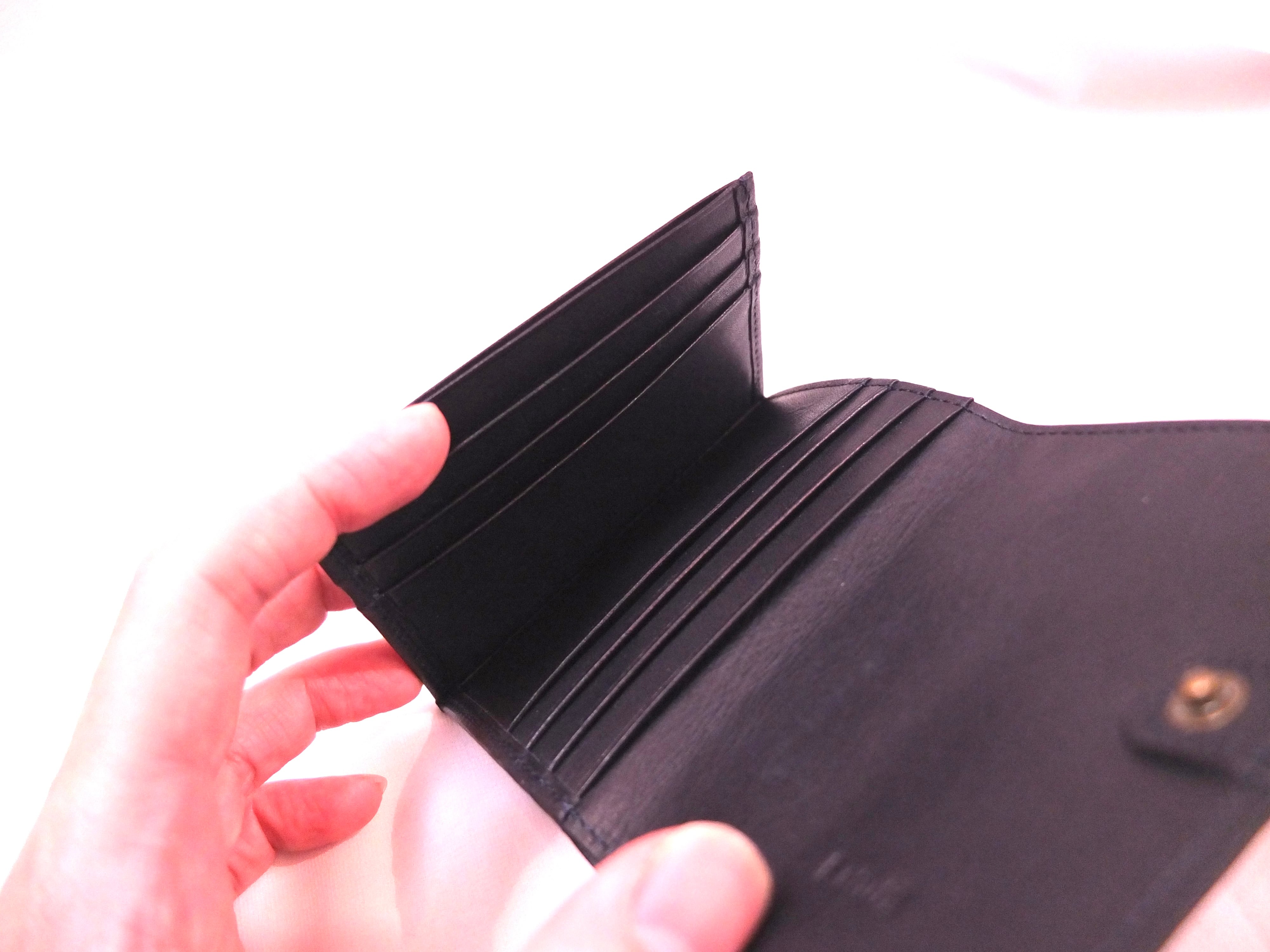 小銭入れを最小限にし、従来の2つ折り財布よりも薄く、かつカードポケットの収納を増やした、スマート財布。
