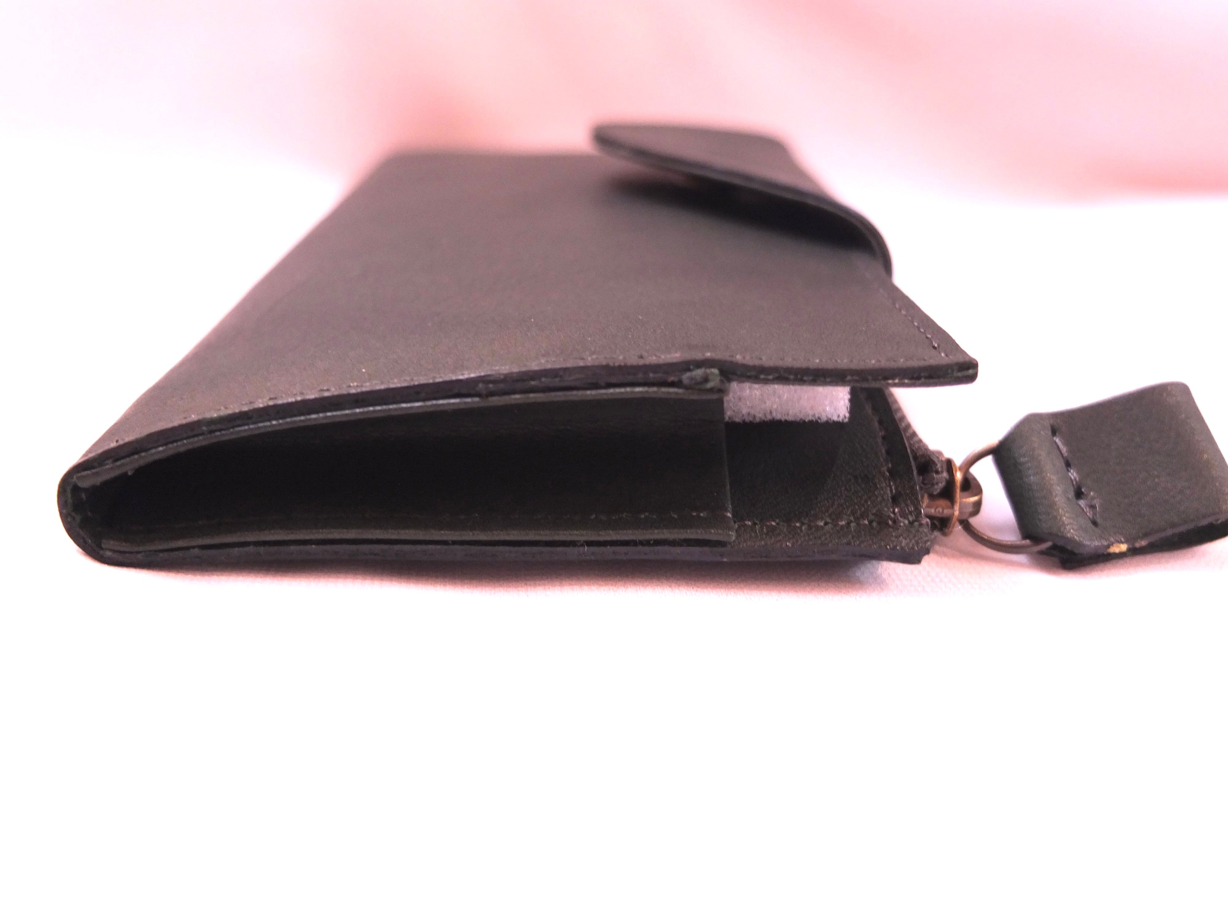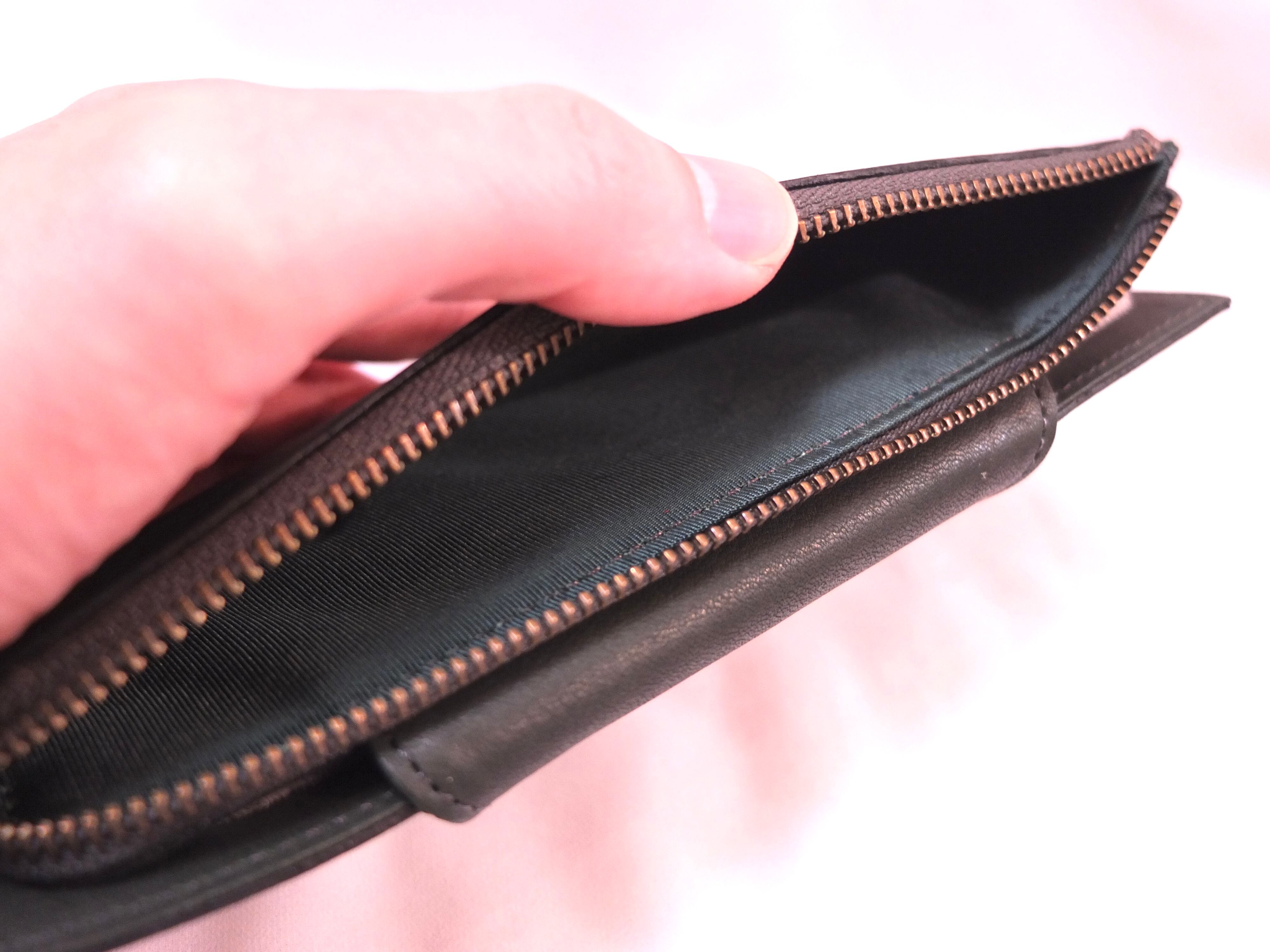 片側にマチを付けることで、従来の薄マチ財布よりも口開きが大きく取り出しやすくなっております。小銭部分も大きくファスナーが開き取り出しやすく、たっぷり入れることができます。カードポケットは4枚ございます。