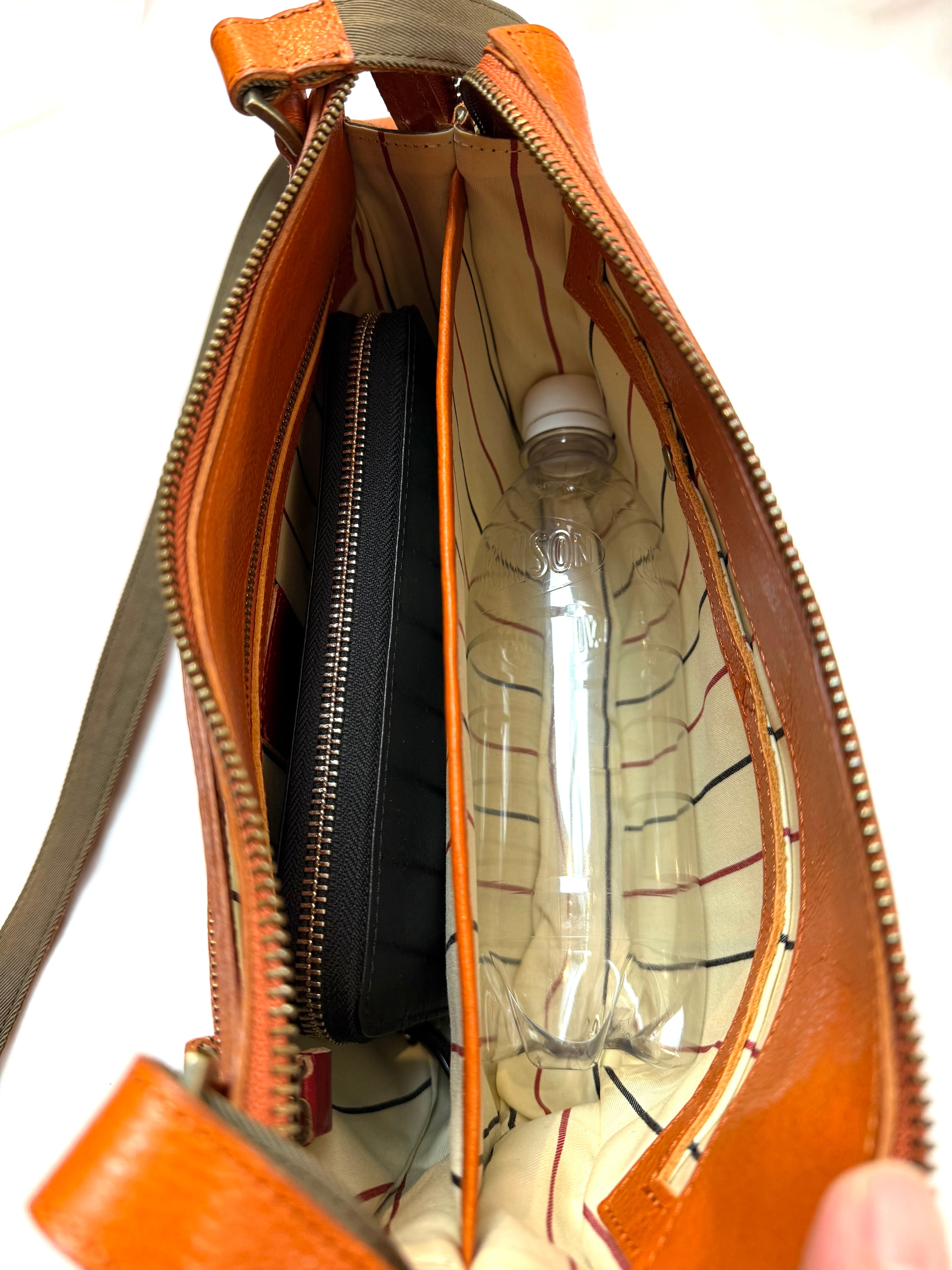 内ポケットはファスナーポケット1か所、オープンポケット1か所、ホック付きポケット1か所がございます。