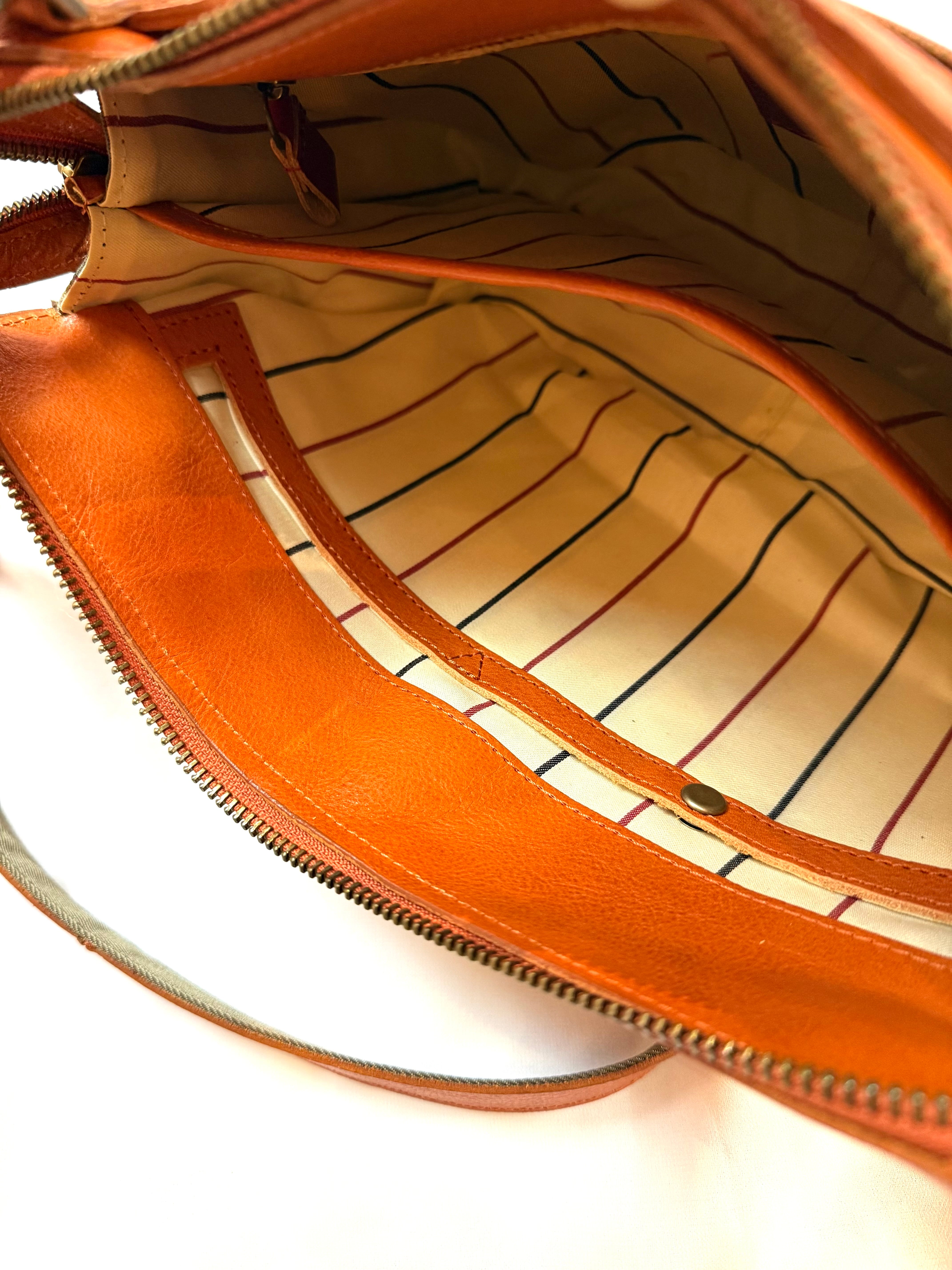 艶のあるナチュラルシュリンクレザーを使用しているため、部位により様々な表情があり1点1点全く違った風合いに。