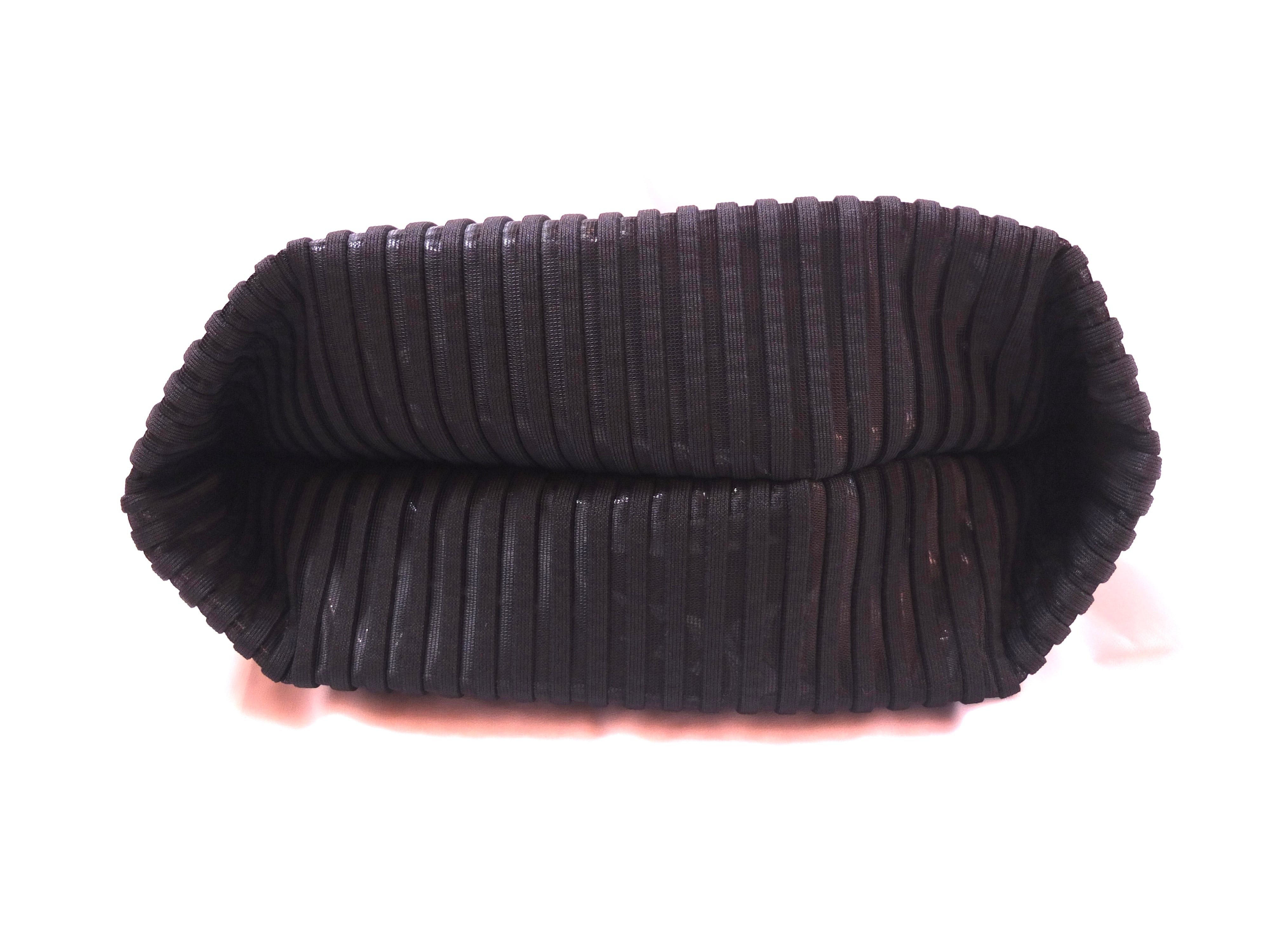 ラインブラックは、太いブラックのラインとメッシュのラインを交互にデザインした素材です。貼り合わせた黒いエナメル生地が、メッシュの奥から輝きます。Mesh WBなどのメッシュシリーズを手掛ける福井県のメーカーとの共同開発した、オリジナルの生地です。