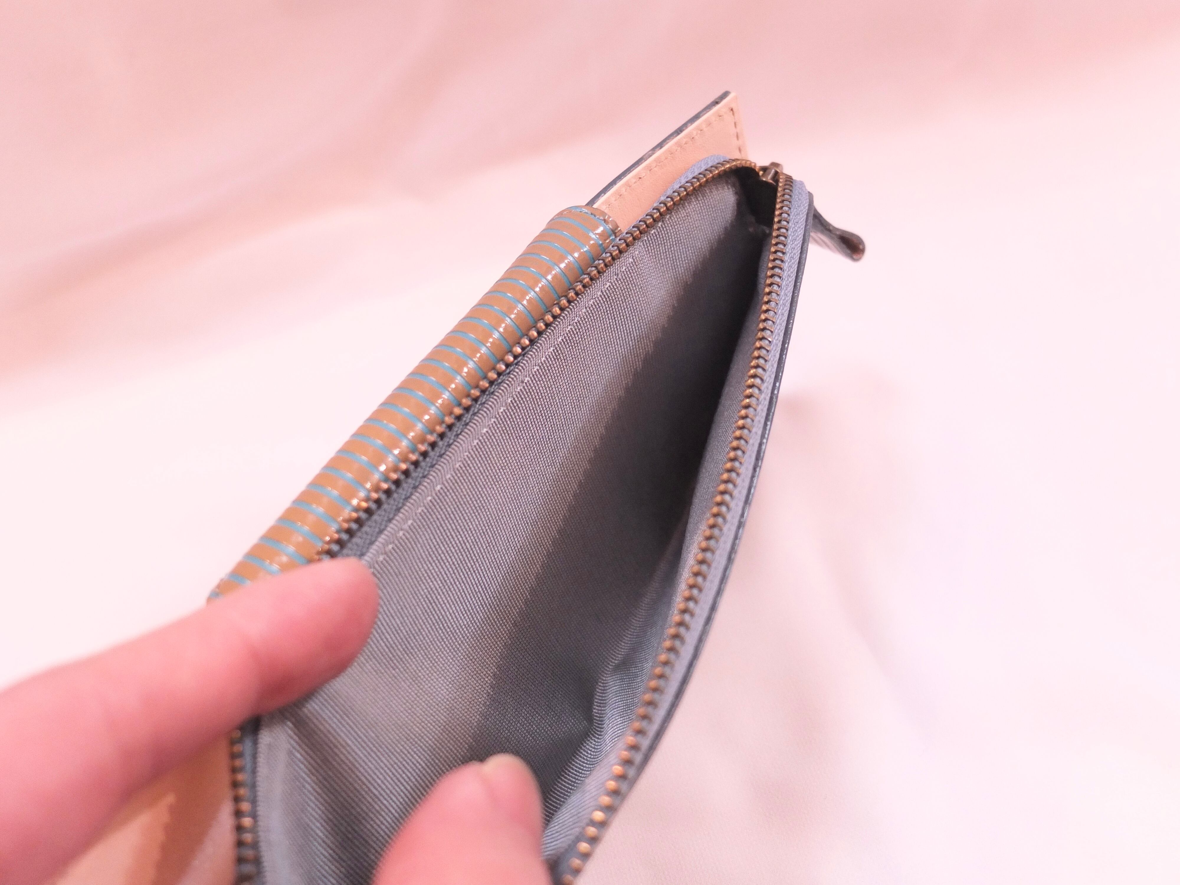 片側にマチを付けることで、従来の薄マチ財布よりも口開きが大きく取り出しやすくなっております。小銭部分も大きくファスナーが開き取り出しやすくなって、たっぷり入れることができます。