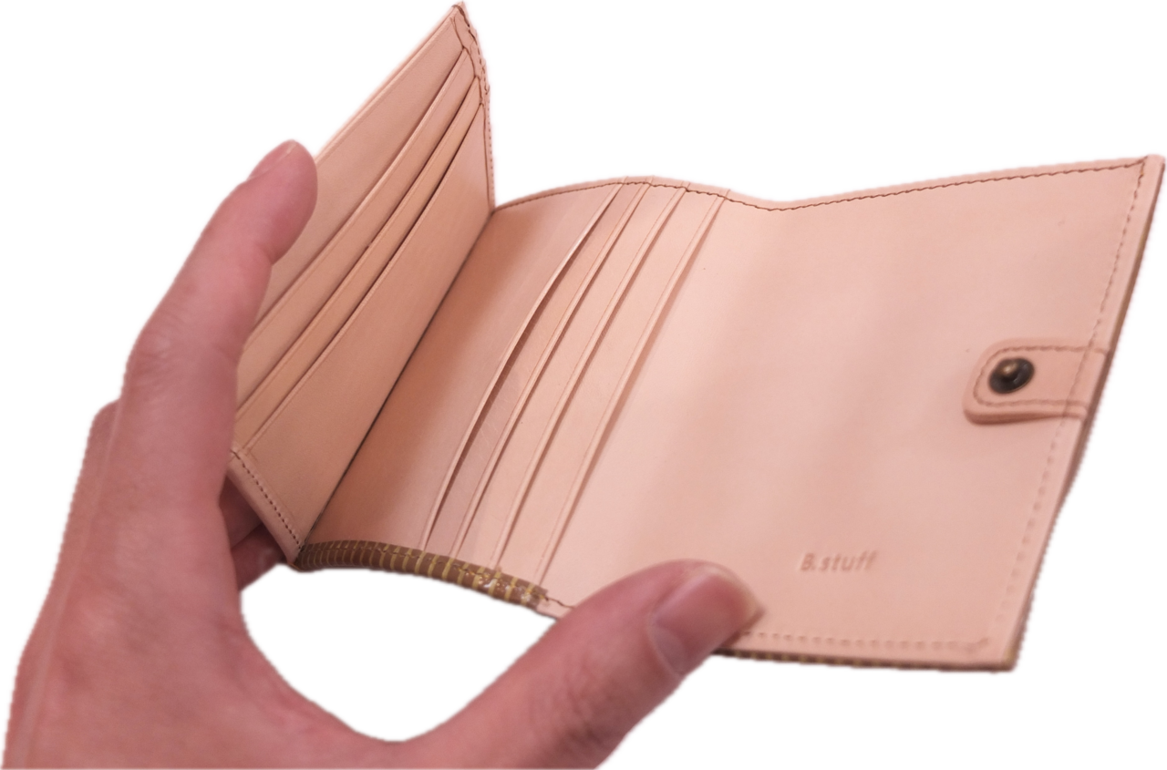 小銭入れを最小限にし、従来の2つ折り財布よりも薄く、かつカードポケットの収納を増やしたスマート財布。