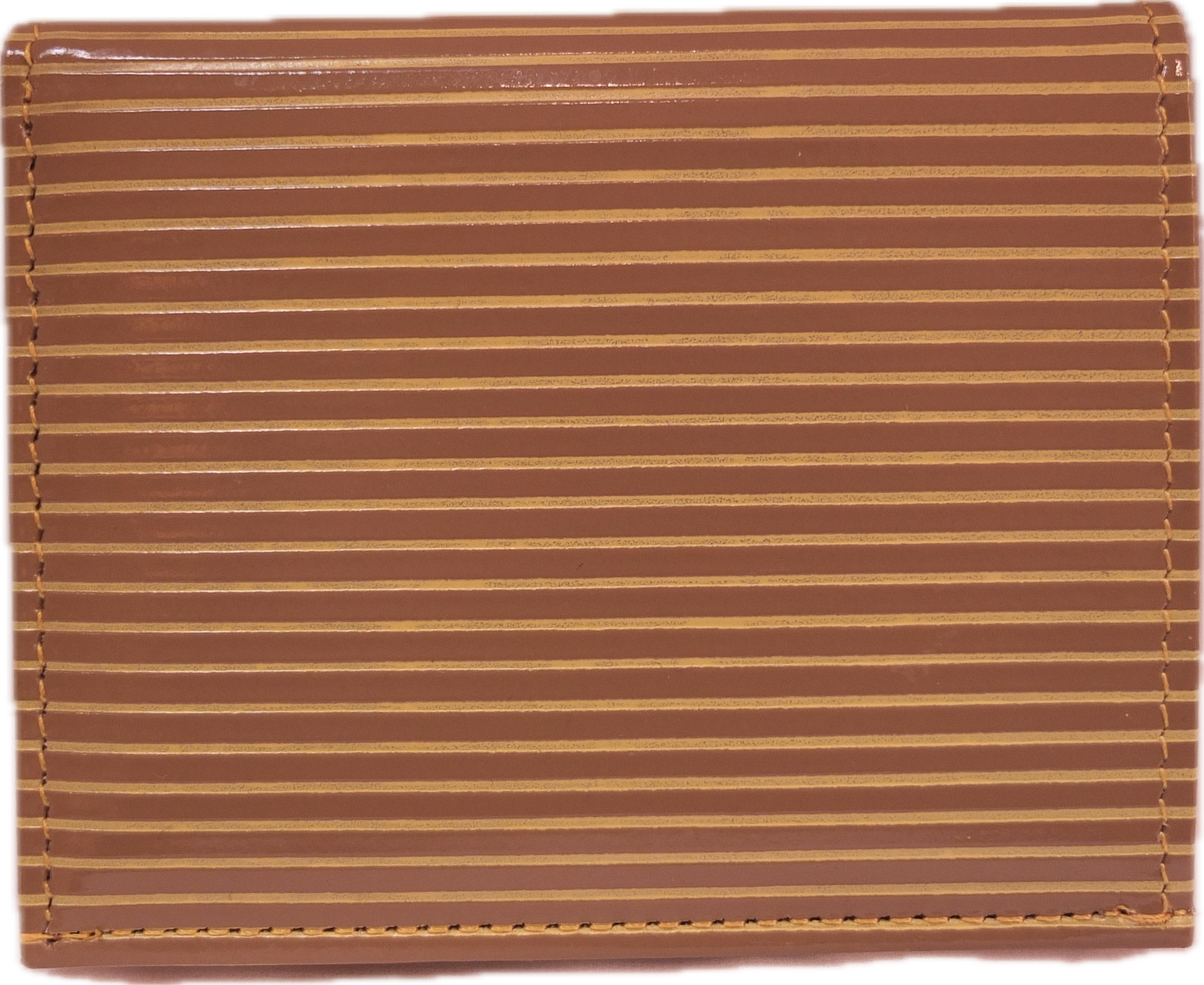 きめ細やかなキップレザーをベースにガラスレザーを作り、その表面にベースとトップの2色を着色しストライプの型を押し、最後に凸部分の色を拭き取って仕上げています。カラフルでポップな雰囲気ながら、ハンドメイドの温もりも感じられる素材です。