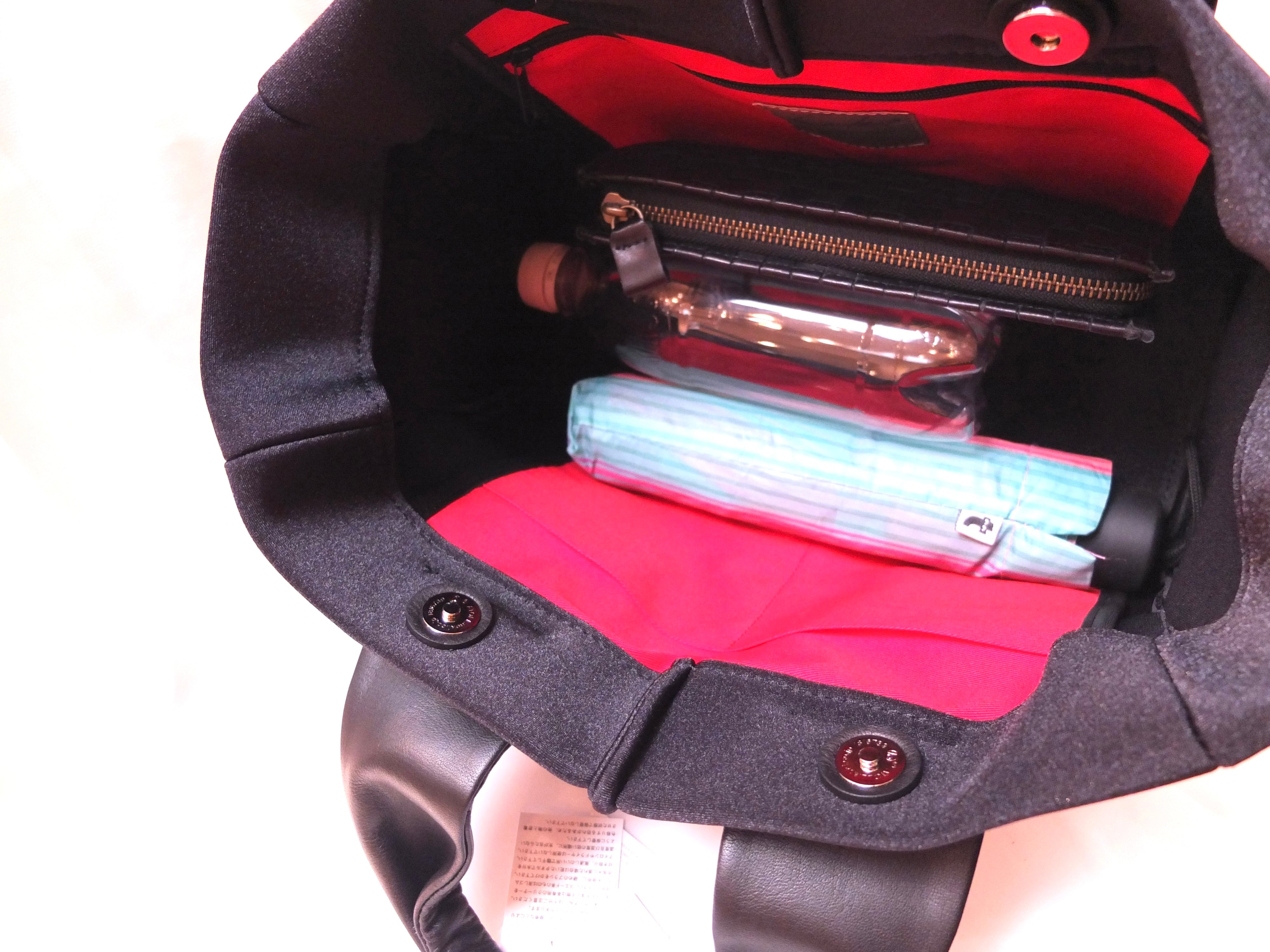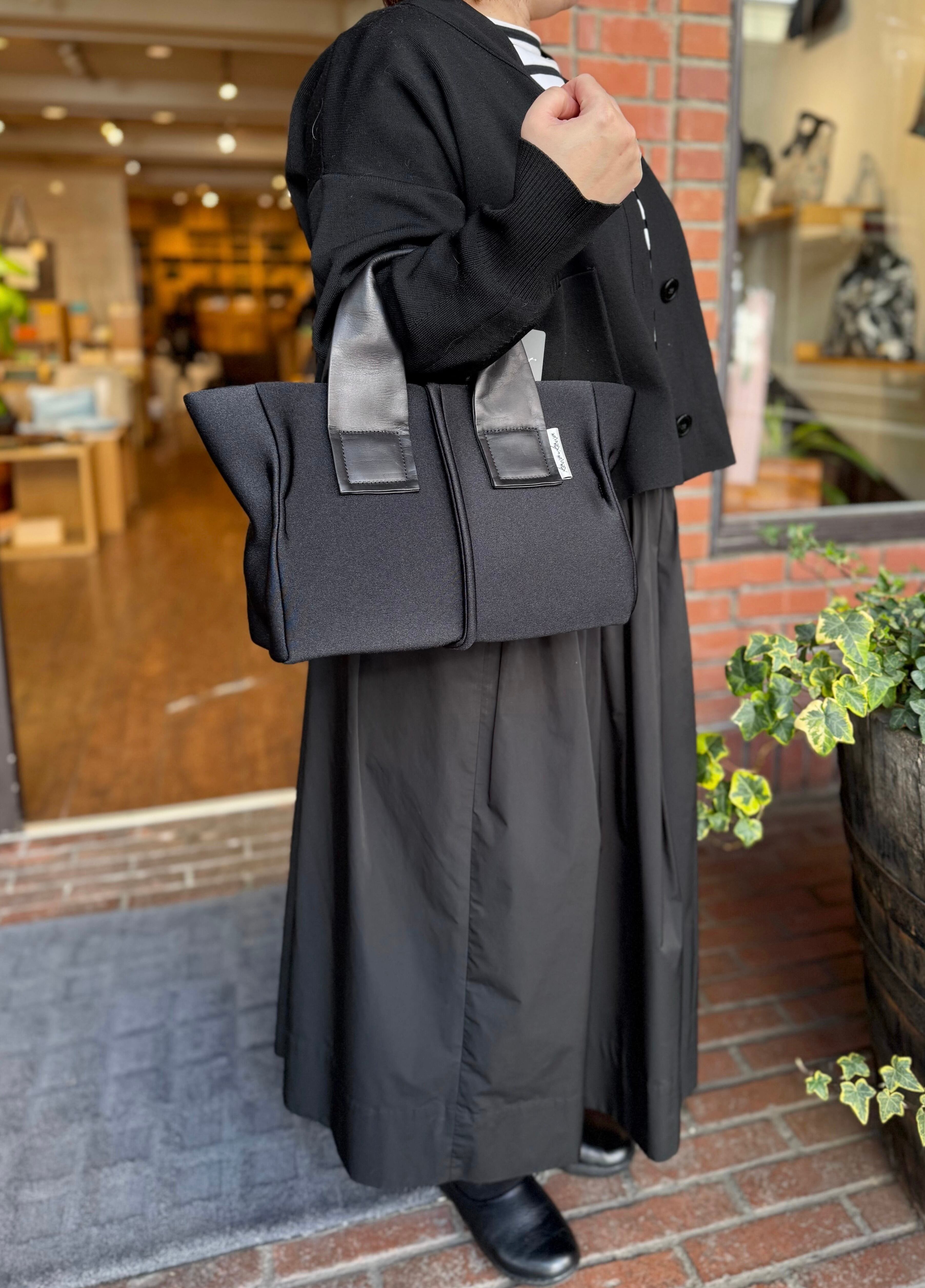 普段使いにちょうどいいサイズのトートバッグ。シンプルながら幅広のレザーハンドルがアクセントの人気のデザイン。収納力に優れ500mlのペットボトルを立てた状態で入れることができます。