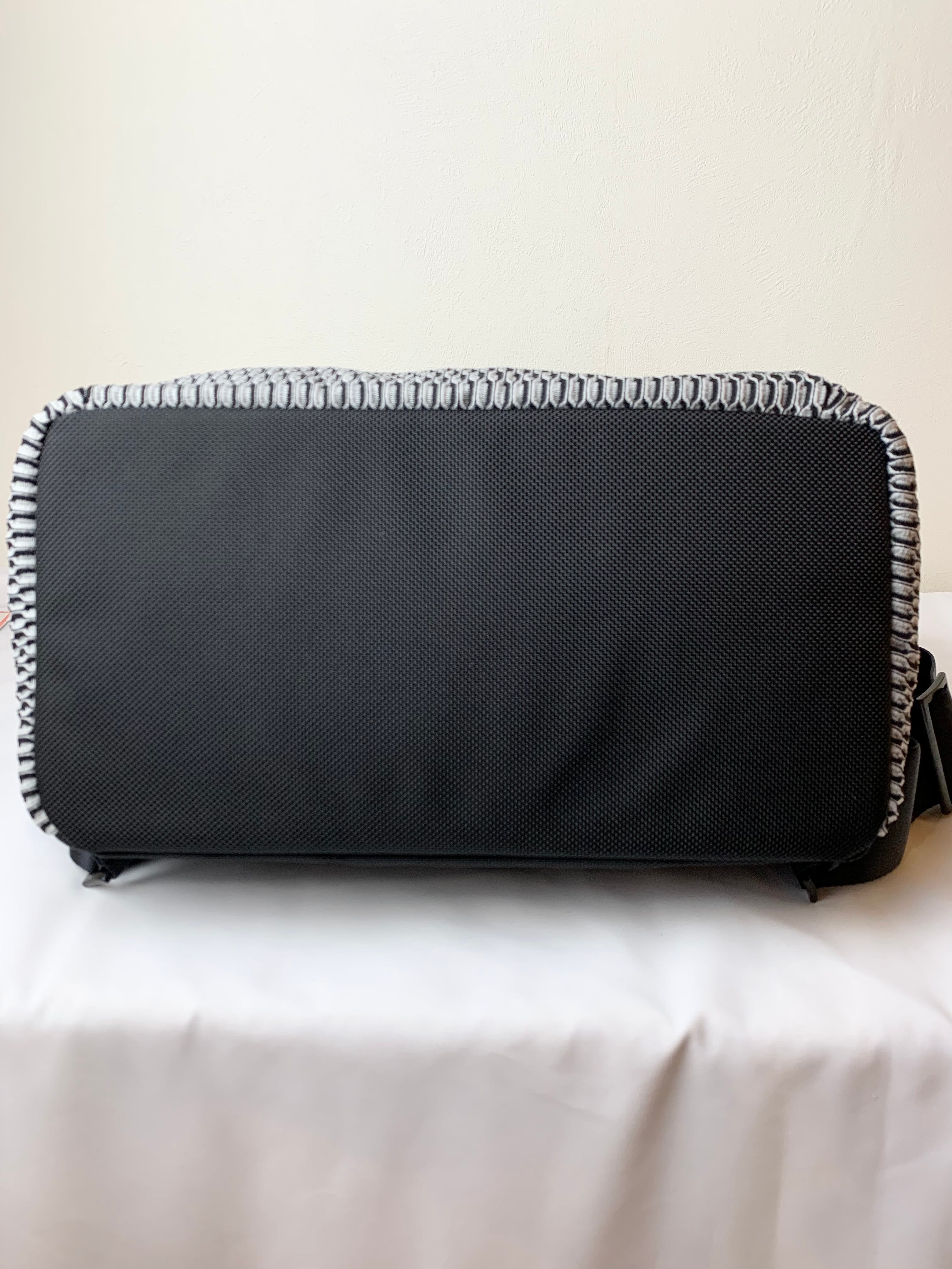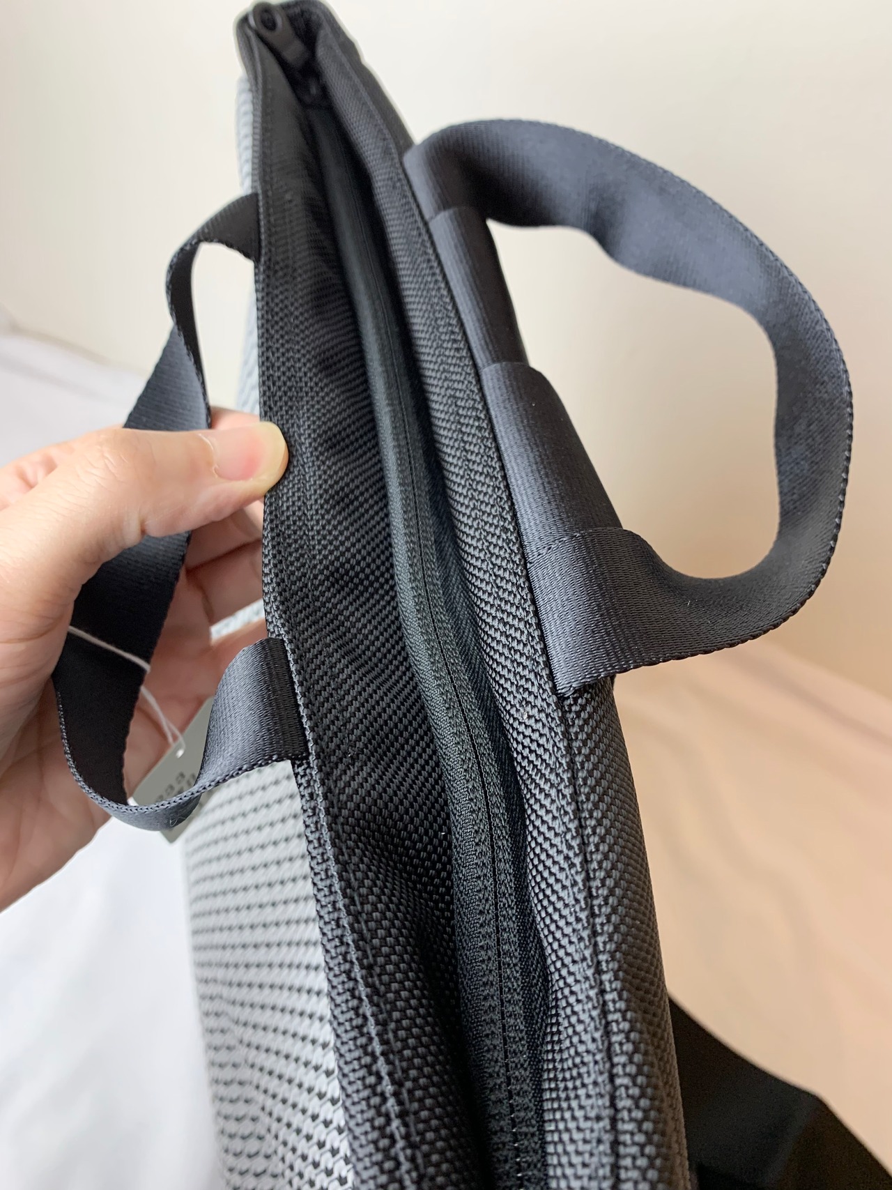 トートバッグとして持つこともでき、ベルトを一番短くすると背面にピタッと沿うので邪魔になりません。