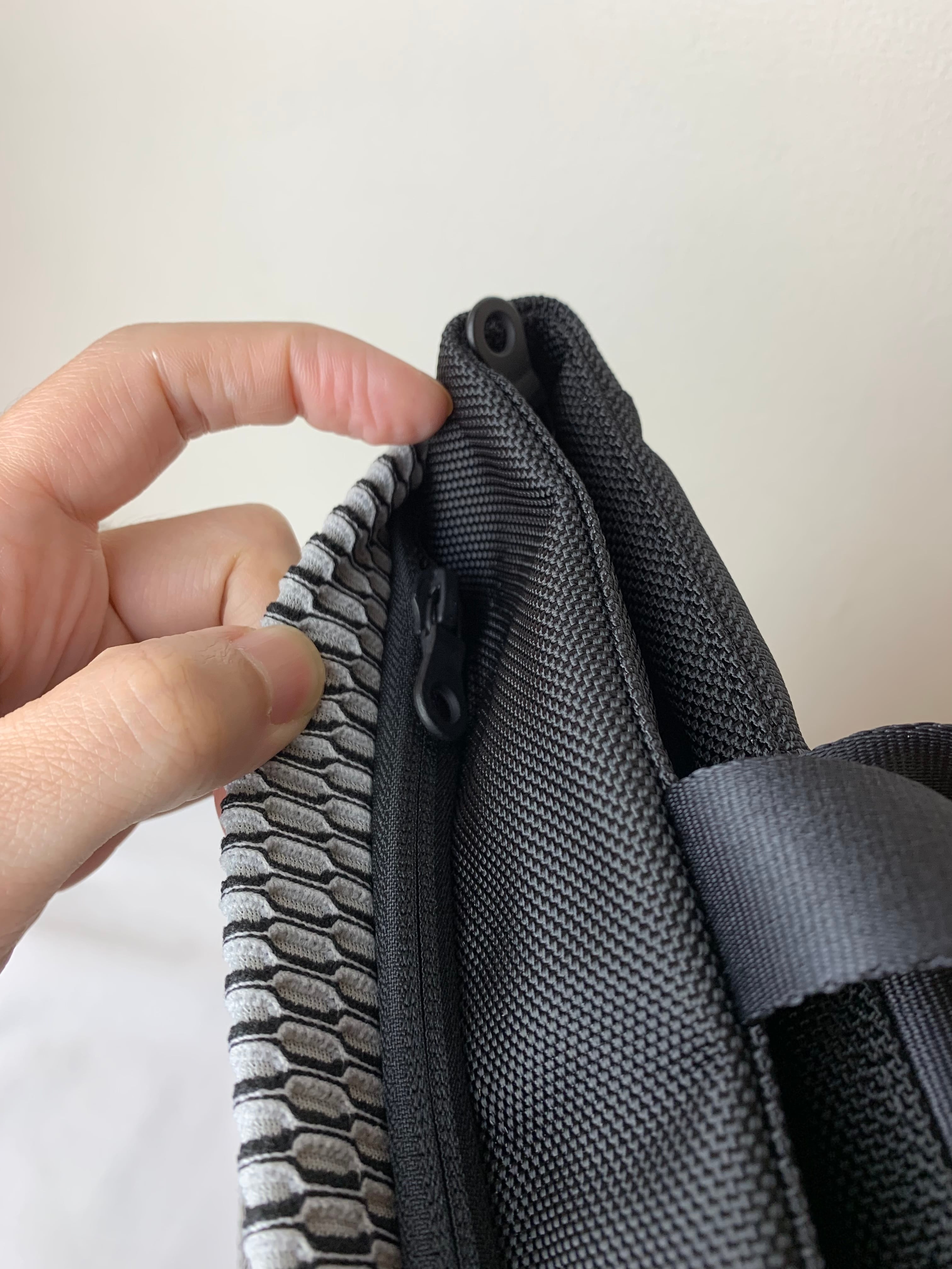 前面ポケット部分のメッシュ生地は、福井県のスポーツシューズ用メッシュなどを手掛けるメーカーのもので、ポリエステル100%のとても軽くて丈夫な素材を使用しています。