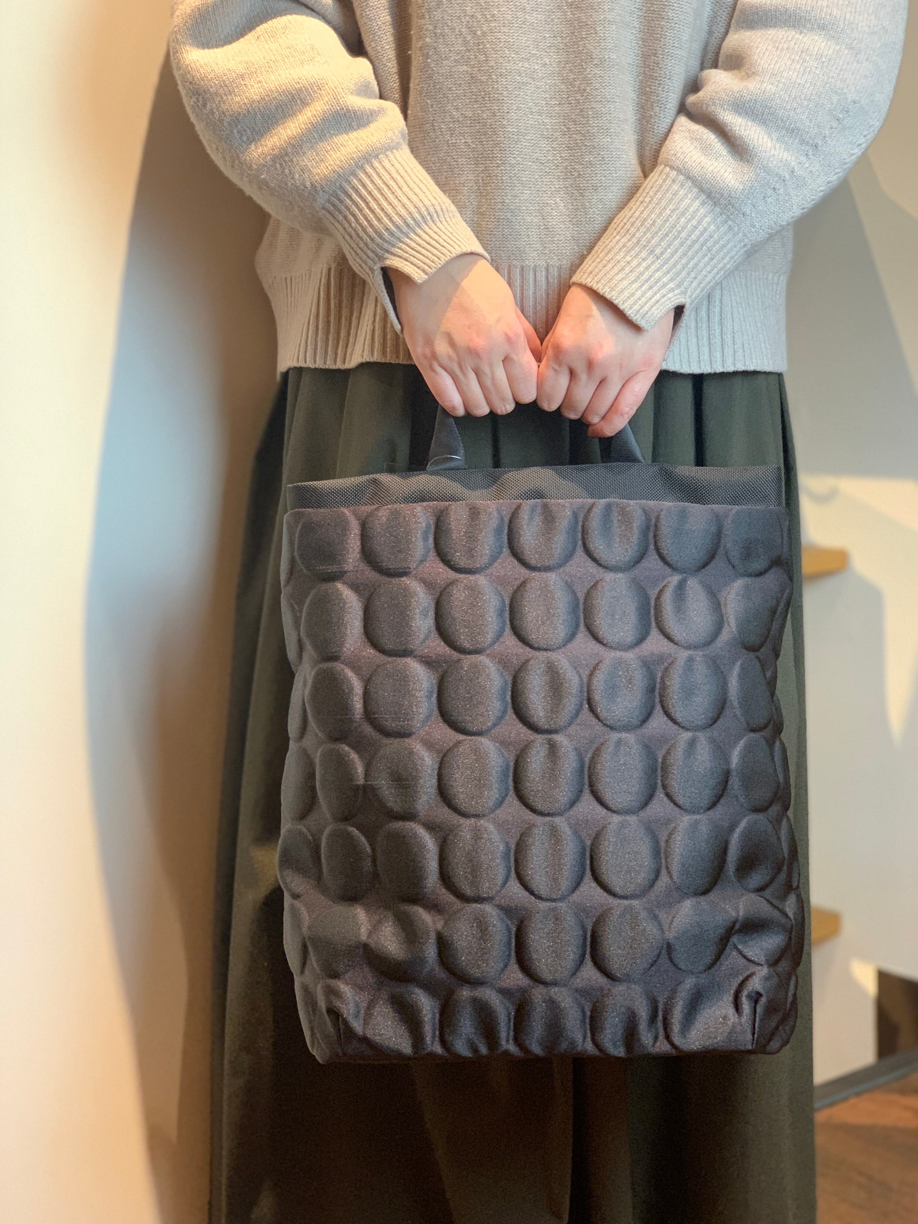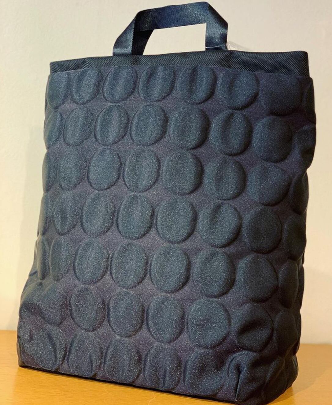 表面に使用しているDot Emboss2は、ナイロン生地に塩縮加工を施すことでドットを浮き上がらせるております。塩縮加工の多くは生地の表面が硬くなってしまうのが多い中、アクリリックは柔らかさをしっかりと残しております。