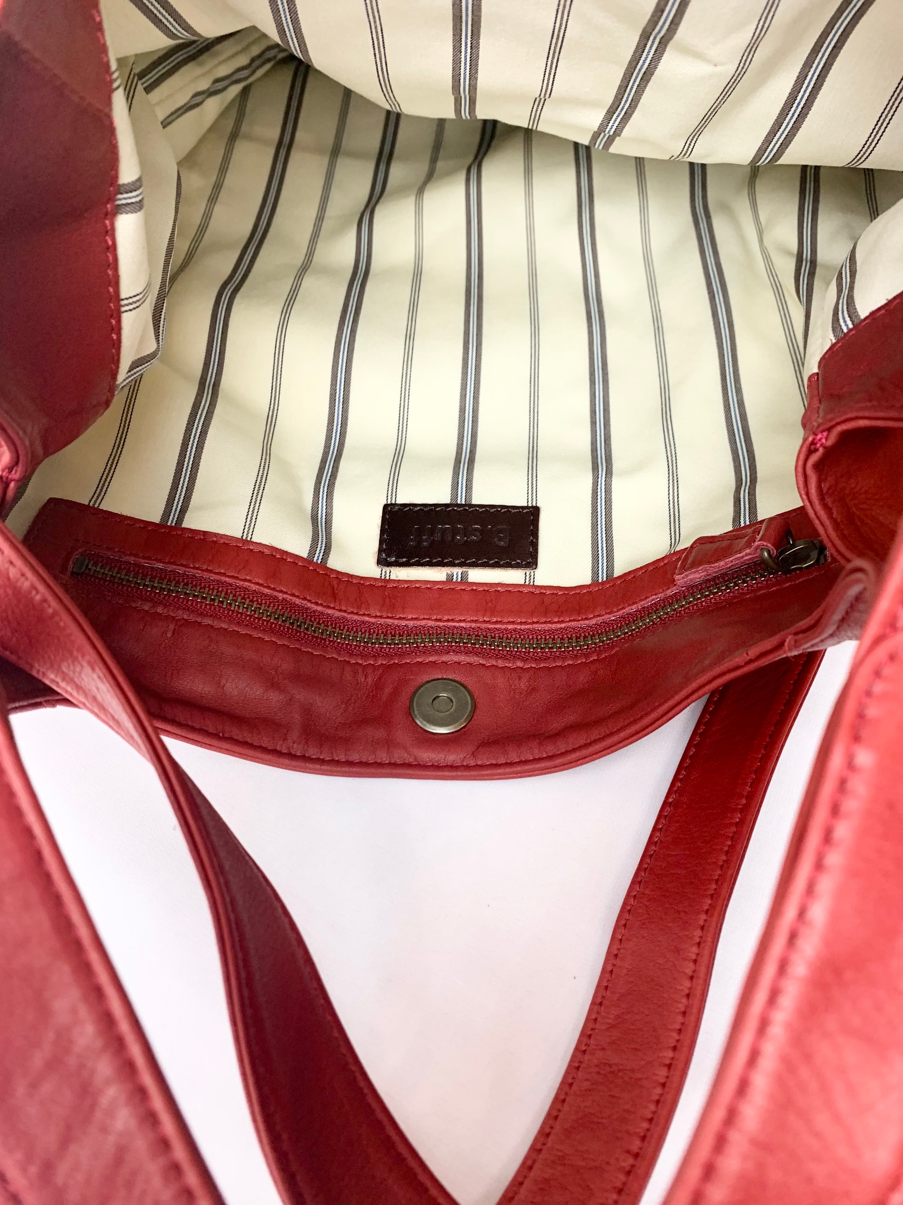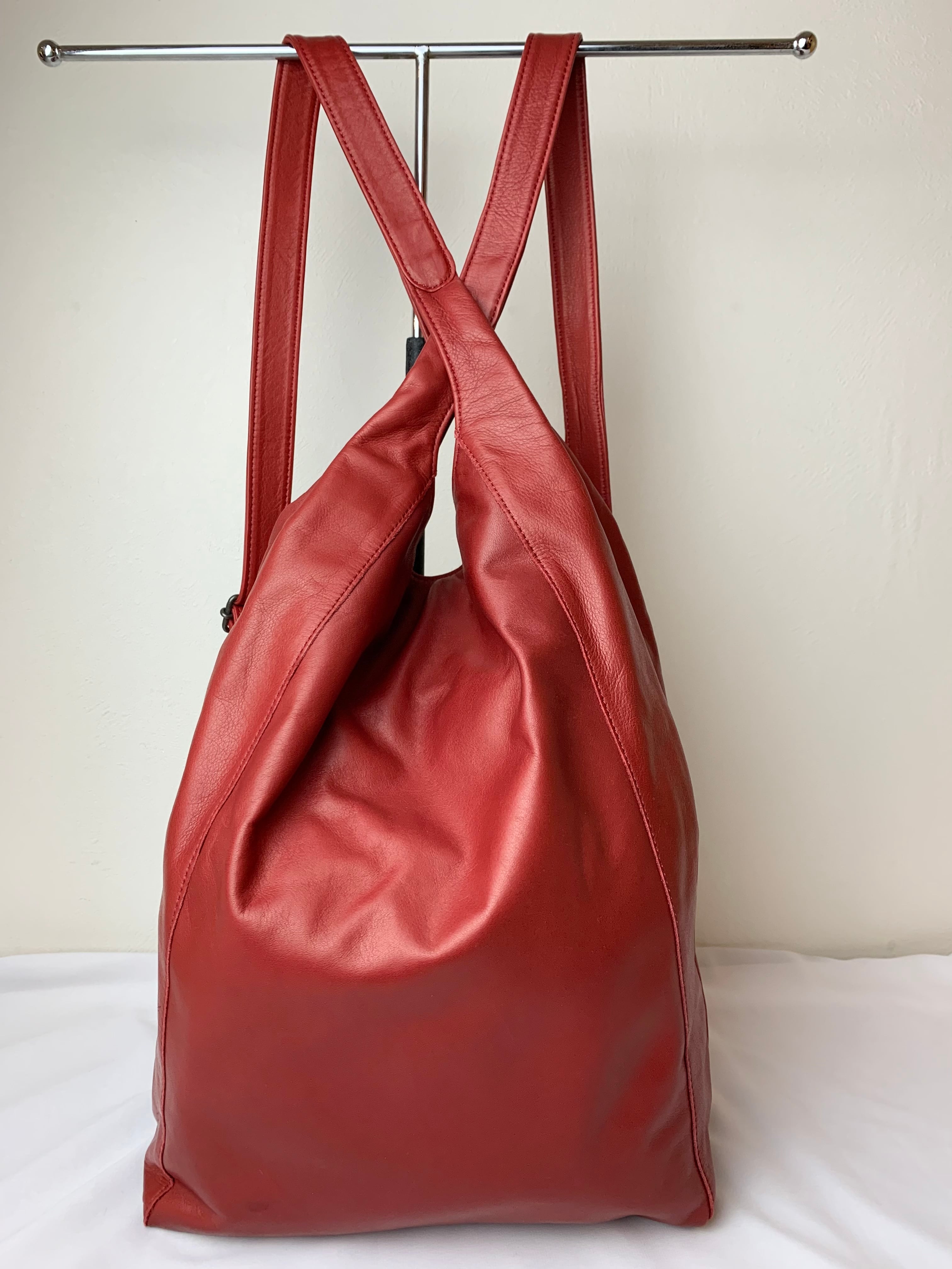 B.stuffで定番人気の、カジュアルに見えない、大人なリュック。とても軽く柔らかさが魅力の革を使用し、ベルトを後ろでクロスさせる事で、肩からずれ落ちにくく、よりフィット感を得られます。