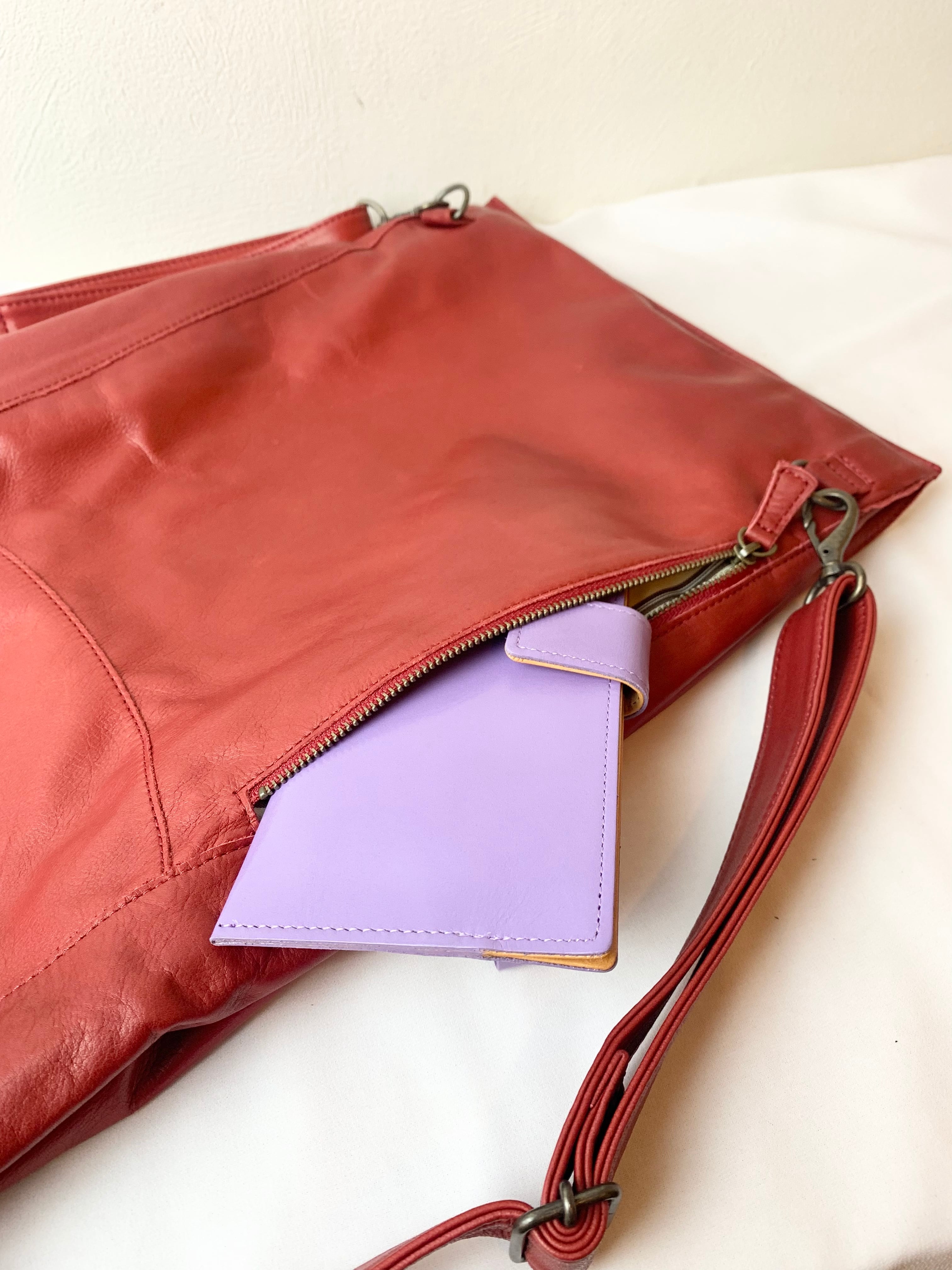 軽量、ソフトな手触りで人気のアンナの革を使用。アニリン仕上げにすることで発色が良く、透明感のある色合いが魅力です。