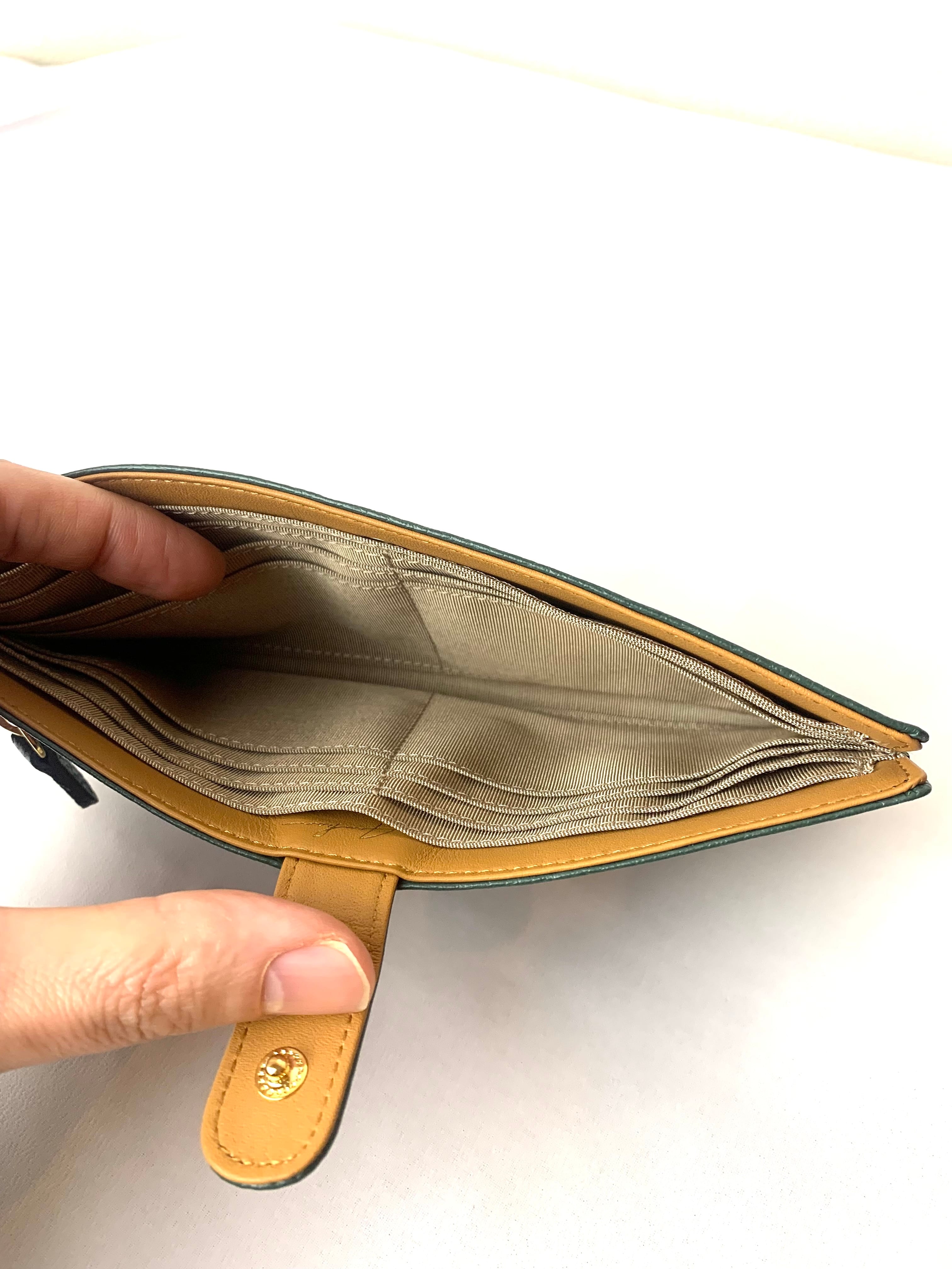 内側は3室構造になっており、カードポケットは12枚、お札入れ等のフリーポケットが2つ。背中側にコインケースがございます。
